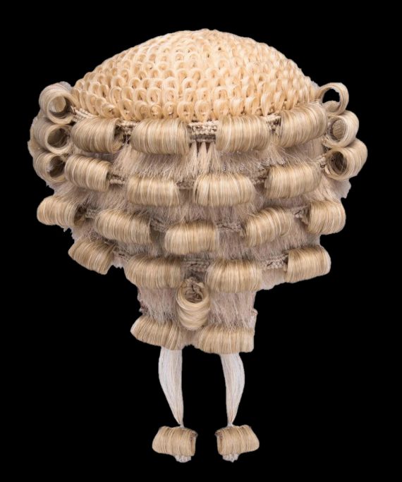 Judges Ceremonial or Full Bottom wigs are handmade in England, by the traditional manner from 100% pure horsehair They are available to purchase either ready made (in incremental quarter inch or 1cm sizes) or made to measure. Sizes: from 21 1/4 inches in 1/4inches. Steps or 54cm in 1cm steps.